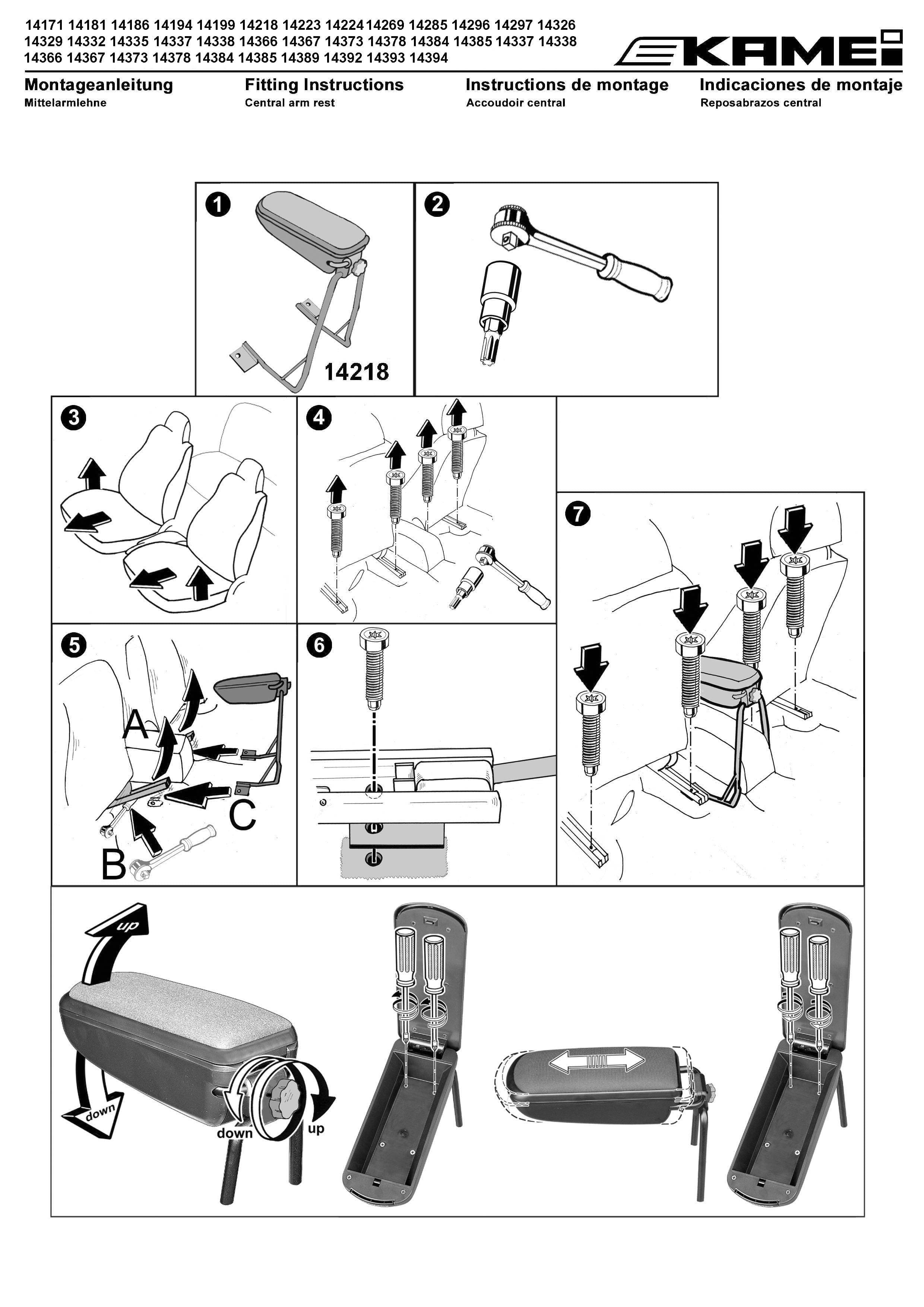 KAMEI Art.-Nr. 0 14285 11 Leder Optik schwarz. Premium Mittelarmlehne. Montage ohne Bohren. In Längsrichtung verstellbar. Senkrecht hochklappbar. Im Neigungswinkel stufenlos einstellbar. Erstausrüsterqualität. Fahrzeugliste beachten!