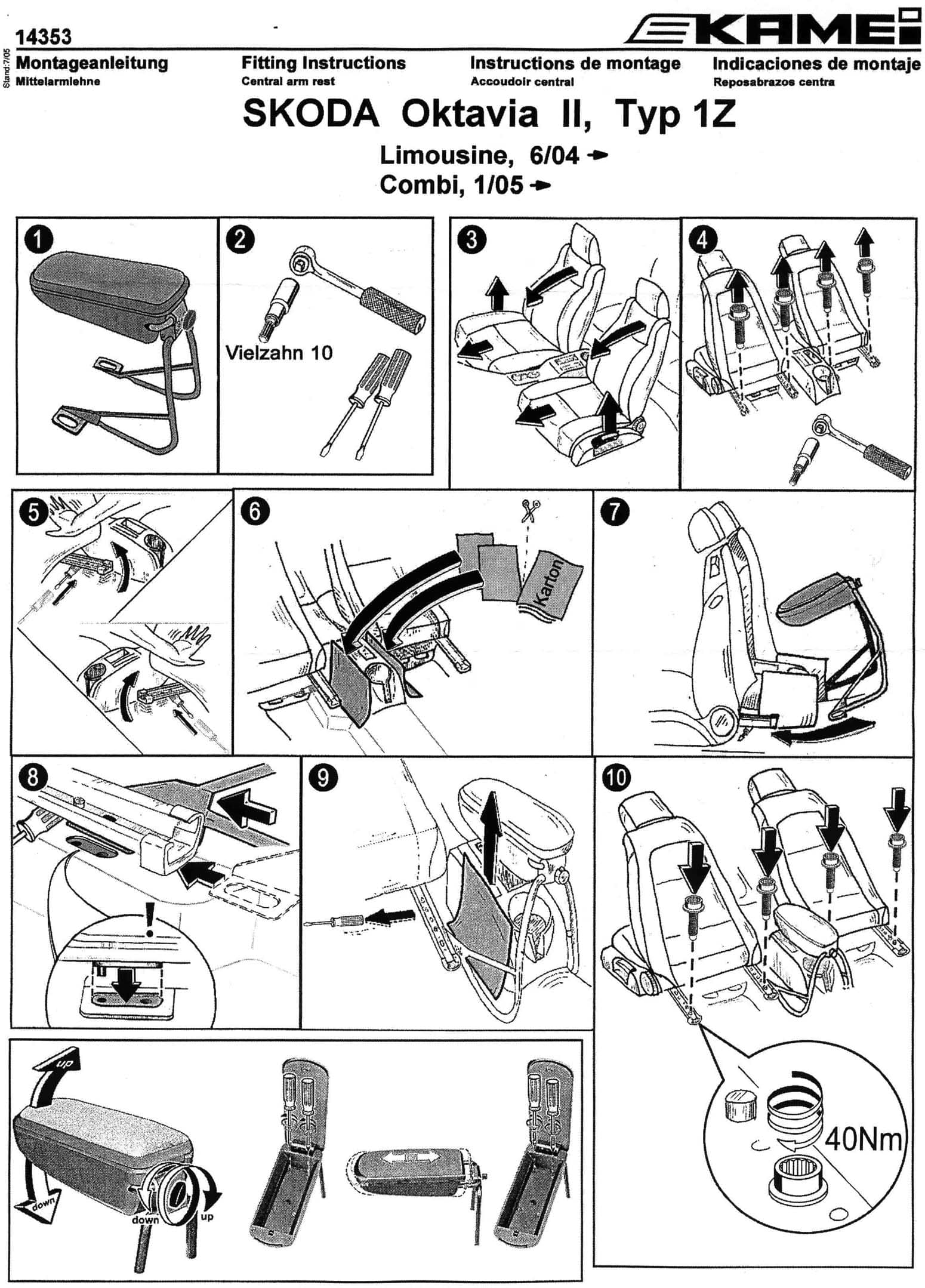 KAMEI Art.-Nr. 0 14353 21 Stoff schwarz. Premium Mittelarmlehne. Montage ohne Bohren. In Längsrichtung verstellbar. Senkrecht hochklappbar. Im Neigungswinkel stufenlos einstellbar. Erstausrüsterqualität. Fahrzeugliste beachten!
